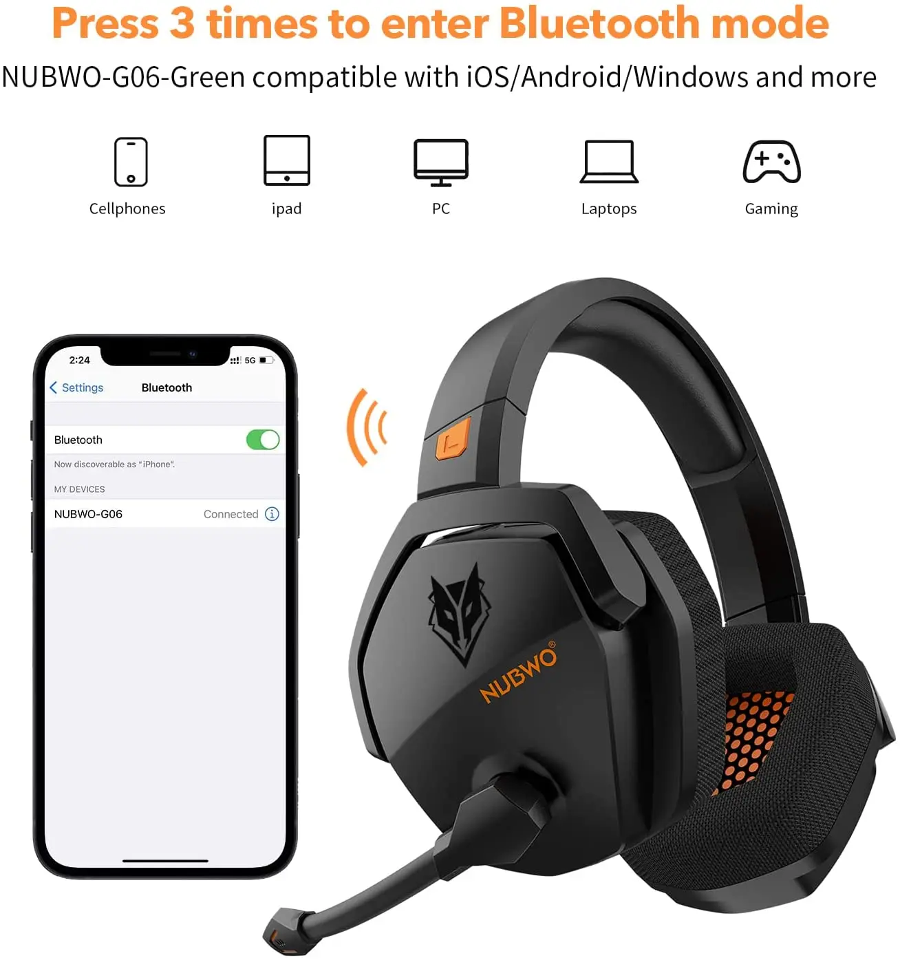 • Bluetooth connectivity – Low latency Bluetooth mode for switches and mobile devices (phones, pads). Watch videos and listen to music in a flow. (With the headset on, quickly press the power button 3 times to enter Bluetooth mode)